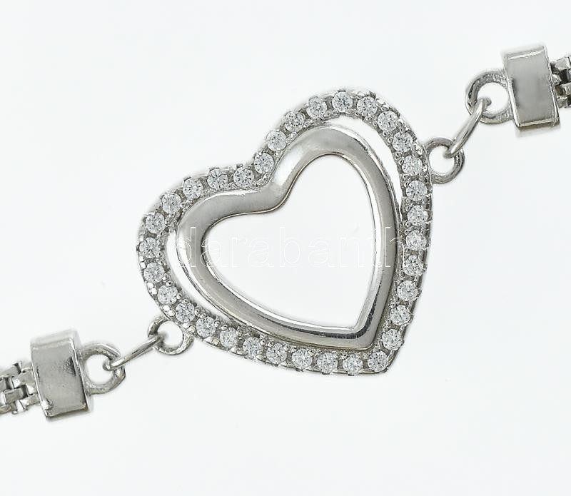 Leírás: Ezüst(Ag) szívecskés karkötő, jelzett, h: 18,5 cm, bruttó: 4,5 g