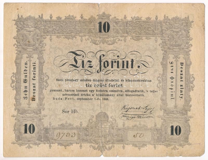 1848. 10Ft "Kossuth Bankó" "Hb 9733 50" T:III-