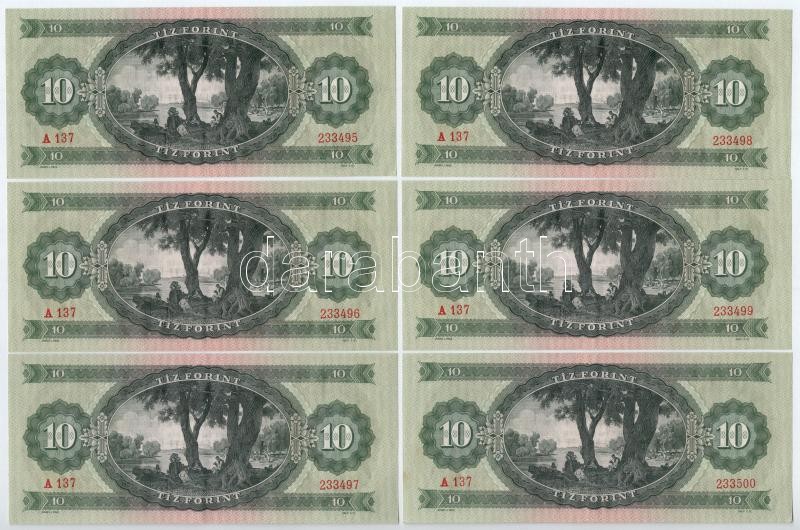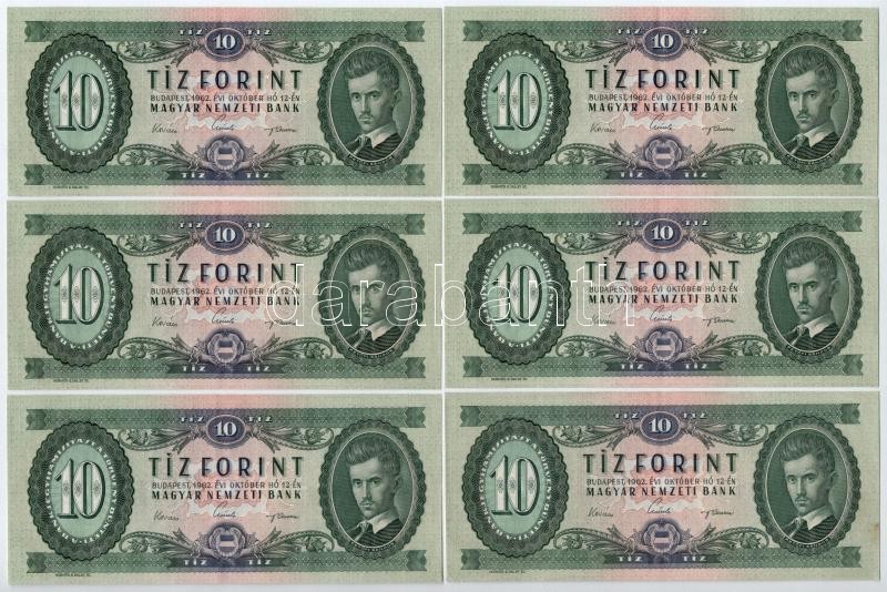 Leírás: 1962. 10Ft (6x, sorszámkövető) T:II-,III szép papír