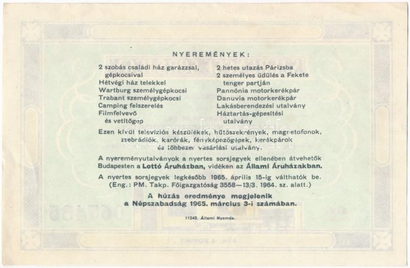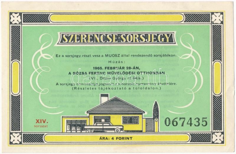 Leírás: Budapest 1965. "Magyar Újságírók Országos Szövetsége - Szerencse-sorsjegy" sorsjegy 4Ft értékben T:I-,II