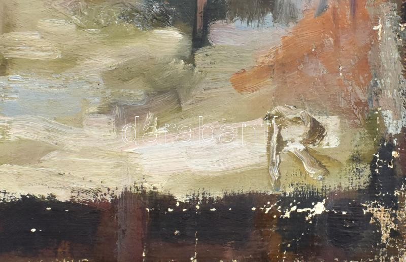 Leírás: Rácz András (1926-2013): Ratosnya (Răstoli?a), Erdély, 1956. Olaj, vászon, jelzett, hátoldalán autográf felirattal. Sérült. Vakráma nélkül. 45x54 cm