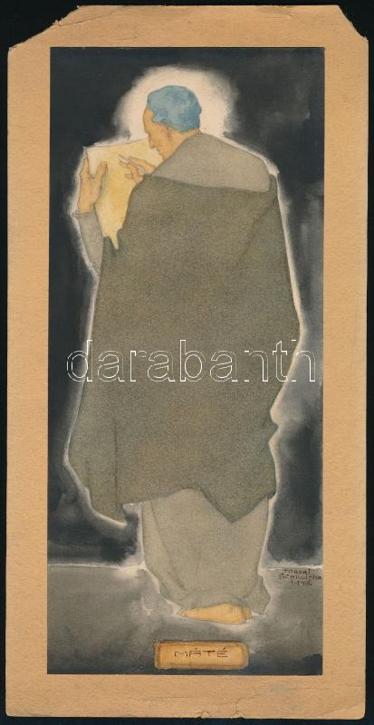 Leírás: Tordai Schilling Oszkár (1880-?): Máté, 1946. Akvarell, ceruza, papír, kartonra kasírozva, karton széle sérült, 25x11 cm