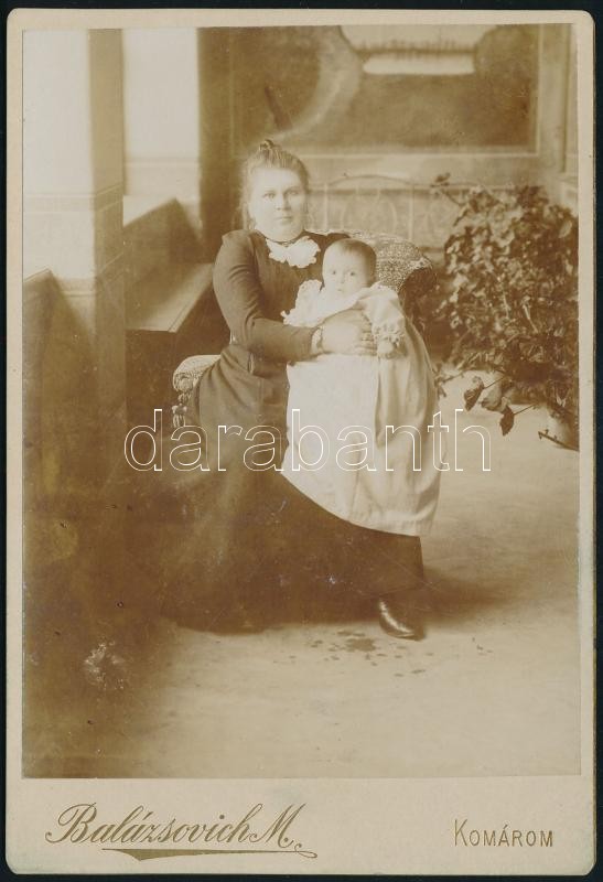 Leírás: cca 1890 Anya gyermekével, keményhátú fotó Balázsovich M. komáromi műterméből, 16×11 cm