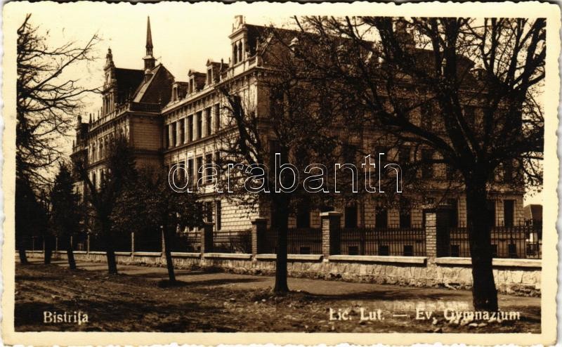 1939 Beszterce, Bistritz, Bistrita; Lic. Lut. / Evangélikus gimnázium ... https://www.darabanth.com/hu/412-Gyorsarveres/412.0/Kepeslapok/Erdely~2000007/1939-Beszterce-Bistritz-Bistrita-Lic-Lut-Evangelikus-gimnazium-Lutheran-grammar-school~II2567032
