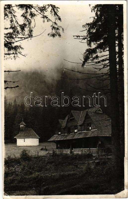 Leírás: Tusnádfürdő, Baile Tusnad; Szent Anna tó, Menedékház / lake, tourist house (apró lyuk / tiny pinhole)