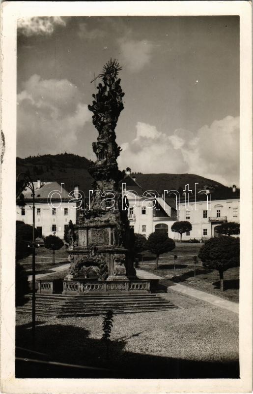 Leírás: 1936 Körmöcbánya, Kremnitz, Kremnica; Szentháromság szobor / Holy Trinity statue (EK)