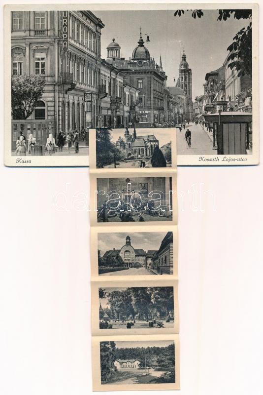 Leírás: Kassa, Kosice; Kossuth Lajos utca, Europa szálloda. leporello / street, hotel. leporellocard