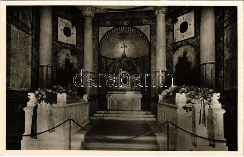 Leírás: Krasznahorkaváralja, Krásnohorské Podhradie; Andrássy mauzóleum, belső. Fuchs József kiadása / mausoleum, interior