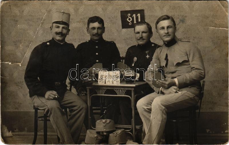 1914 Kártyázó és italozó katonák / WWI Austro-Hungarian K.u.K. militar... https://www.darabanth.com/hu/412-Gyorsarveres/412.0/Kepeslapok/Katonai~2000058/1914-Kartyazo-es-italozo-katonak-WWI-Austro-Hungarian-KuK-military-soldiers-playing-card~II2570114