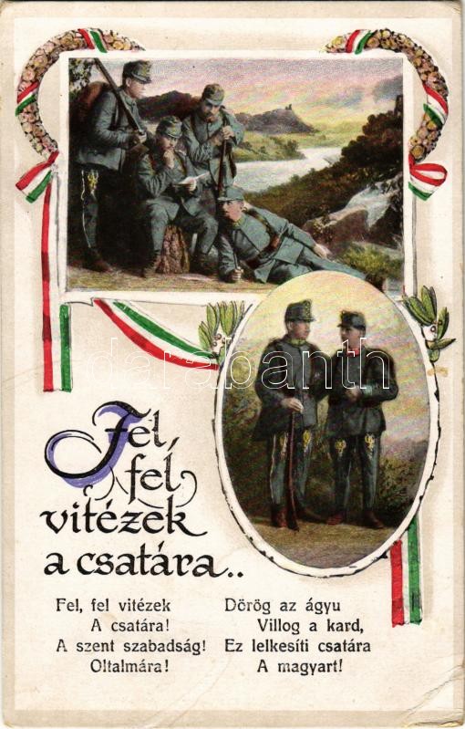 1917 Fel, fel vitézek a csatára / WWI Austro-Hungarian K.u.K. military... https://www.darabanth.com/hu/412-Gyorsarveres/412.0/Kepeslapok/Katonai~2000058/1917-Fel-fel-vitezek-a-csatara-WWI-Austro-Hungarian-KuK-military-art-postcard-Hungarian-pat~II2570389