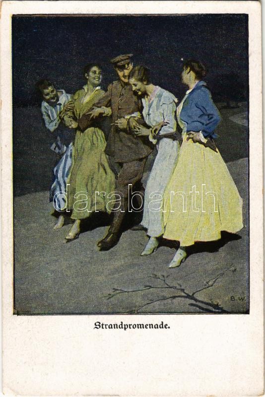 Leírás: Strandpromenade. Wennerberg-Kriegspostkarte der Lustigen Blätter Nr. 16. / WWI German military art postcard s: B.W. (EK)