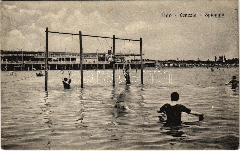 Venezia, Venice; Lido, Spiaggia / beach, bathers, swing (EK) https://www.darabanth.com/hu/412-Gyorsarveres/412.0/Kepeslapok/Olaszorszag~2000062/Venezia-Venice-Lido-Spiaggia-beach-bathers-swing-EK~II2569026