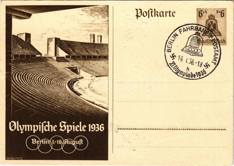 1936 Olympische Spiele Berlin / XI Olympiad / Summer Olympics, Olympic Games in Berlin; 6+4 Ga. s: Georg Fritz + "Berlin Fahrbares Postamt XI. Olympiade 1936" So. Stpl. (apró lyukak / tiny pinholes)
