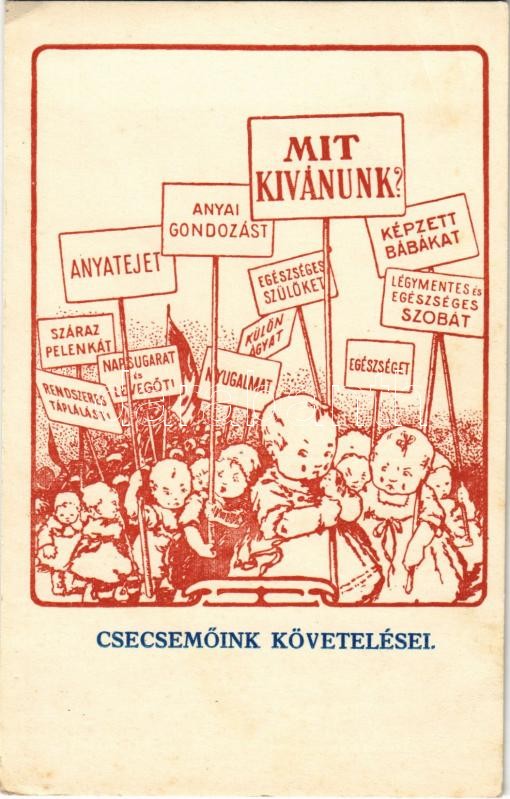 Csecsemőink követelései. Kiadja az Országos Stefánia Szövetség az anyák és csecsemők védelmére / Hungarian propaganda postcard, Mother and child protective movement