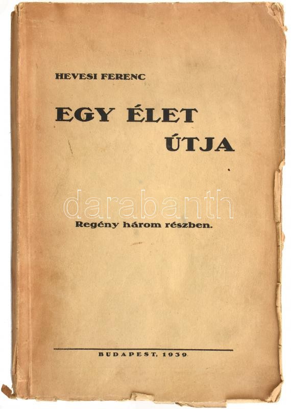 Hevesi Ferenc: Egy élet útja. Reverend Doubleweight változásai. Bp.,1939, szerzői (Gewürcz Ferdinánd könyvnyomda). Kiadói papírkötésben, sérült gerinccel és borítóval, helyenként sérült lapokkal (feltehetően a felvágás során keletkezett sérülések).