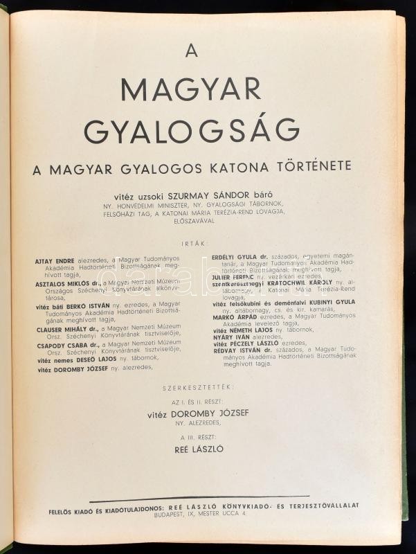 Ajtay Endre et al: A magyar gyalogság. A magyar gyalogos katona története. Bp., é. n., Reé László Könyvkiadó- és Terjesztővállalat. Számos érdekes képpel és írással. Kiadói, aranyozott egészvászon kötésben, kis kopásokkal