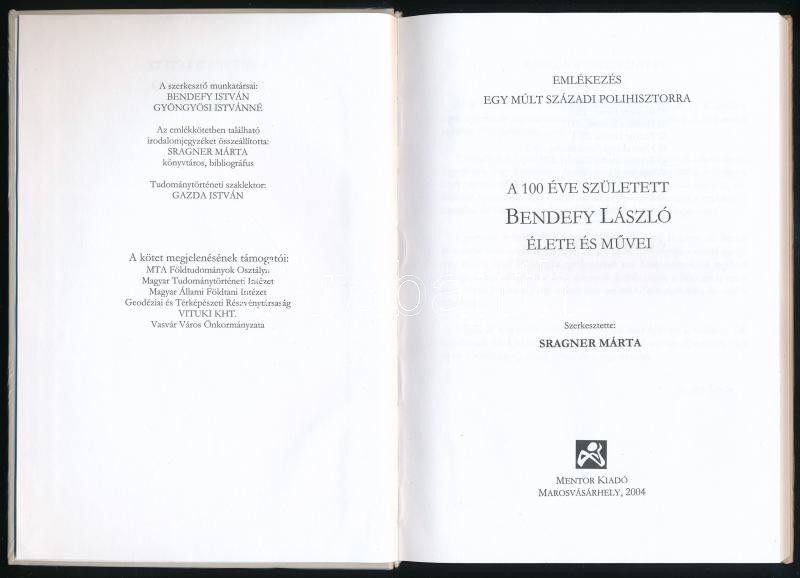 Sragner Márta: A 100 éve született Bendefy László élete és művei. Maro... https://www.darabanth.com/hu/412-Gyorsarveres/412.0/Konyvek/Konyvek-Tortenelem~1000008/Sragner-Marta-A-100-eve-szuletett-Bendefy-Laszlo-elete-es-muvei-Marosvasarhely-2004-Me~II2567927