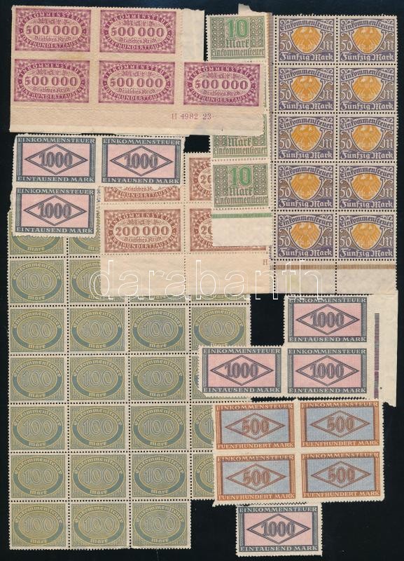 Leírás: Német jövedelemadó bélyegek nagyrészt ívdarabokban, ömlesztve