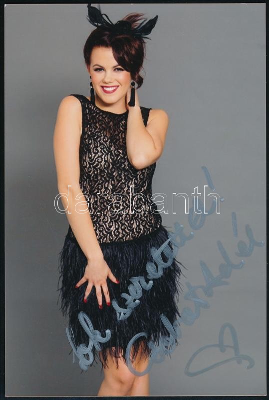 Leírás: Csobot Adél (1994-) énekesnő aláírása az őt ábrázoló fotón