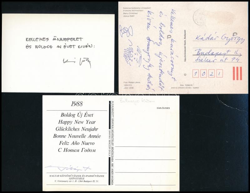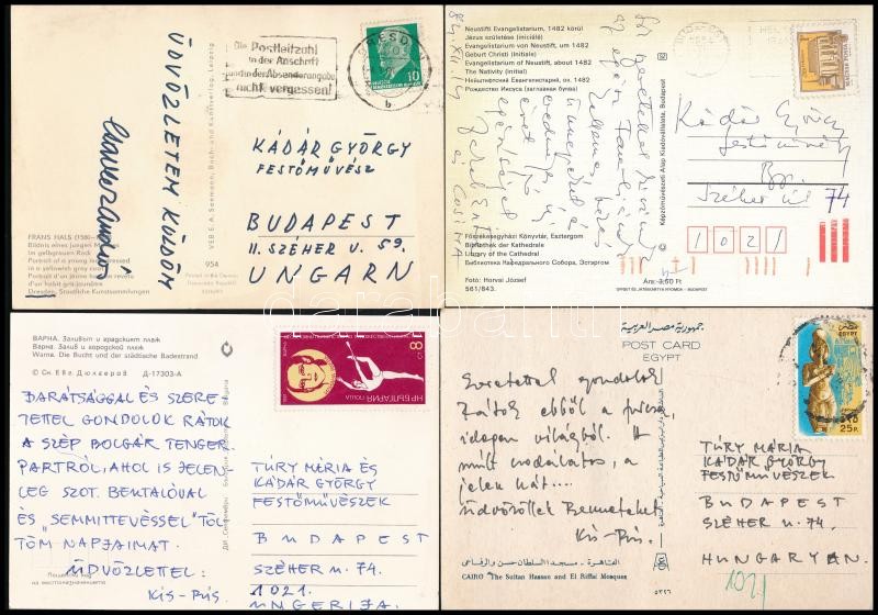 Leírás: Festőművészek által írt képeslapok Kádár György festőművésznek: Kis.Pris, Szunyoghy, Dékány, Kis Györg, Csavlek, Jakab Eszter és Cosima