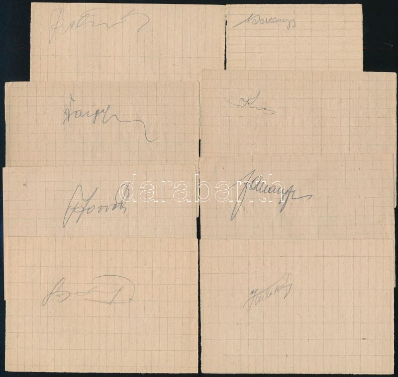 Leírás: Szombathelyi Lokomotív Sportegyesület (Szombathelyi Haladás VSE) labdarúgó csapatának focistáinak aláírásai, közte: Szabados László, Varga, Rákai János, Kulcsár Ferenc, Kiss, Horváth, Farsang, Bakonyi, összesen,
