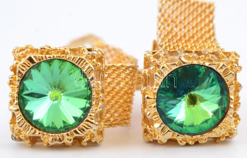 Leírás: Aranyozott fém mandzsetta, csiszolt üveggel, karton tokban