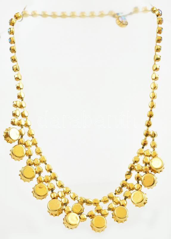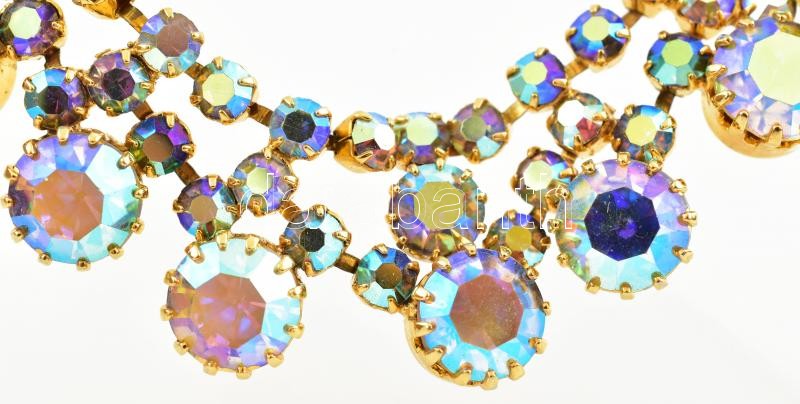 Leírás: Dekoratív irizáló strasszokkal díszített nyaklánc, jó állapotban, h: 42 cm