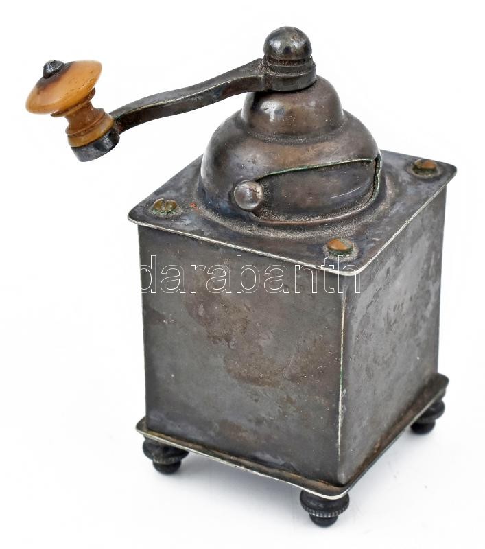 Leírás: Hacker mini fém kávédaráló, jelzett, kopott, h: 9 cm