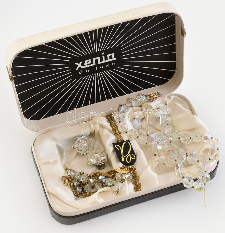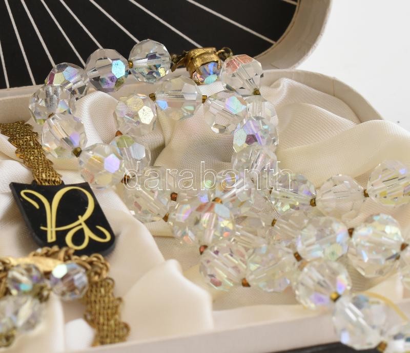 Leírás: Kristály bizsu ékszergarnitúra, dobozban, 19x11cm
