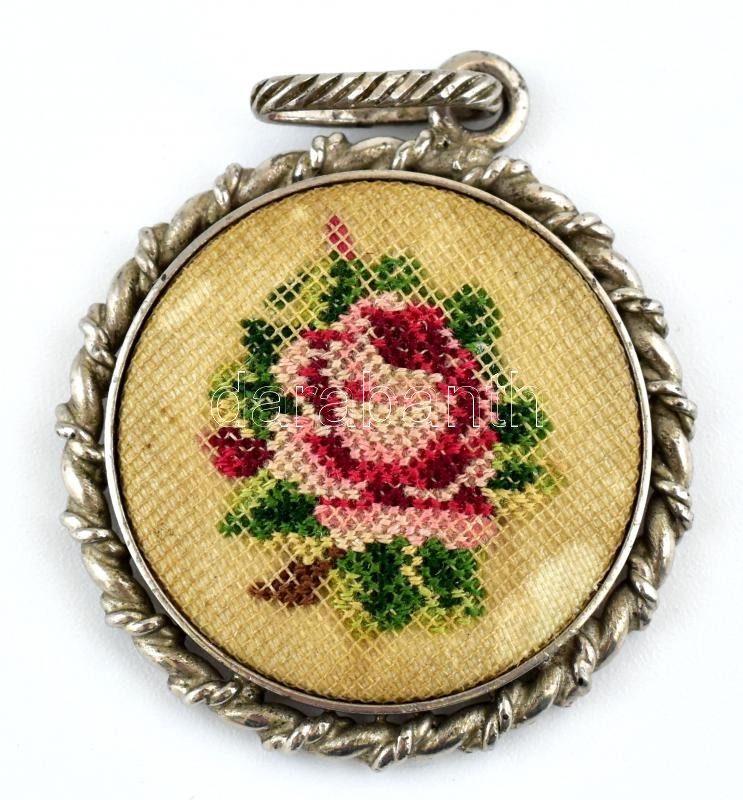 Leírás: Régi tűgobelines medál, lyukas a gobelin 3cm
