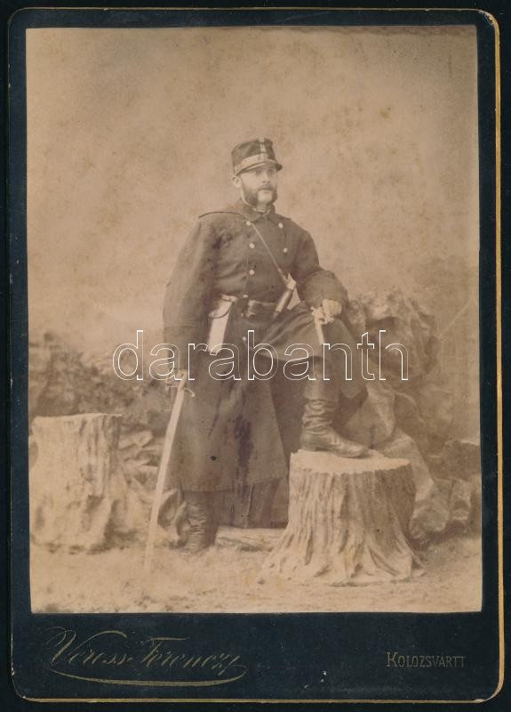 cca 1890 Katona karddal, pisztollyal köpenyben kabinetfotó Veress Fere... https://www.darabanth.com/hu/412-Gyorsarveres/412.0/Mutargy-papirregiseg-egyeb/Militaria~500028/cca-1890-Katona-karddal-pisztollyal-kopenyben-kabinetfoto-Veress-Ferenc-Kolozsvar-11x16-cm~II2573445