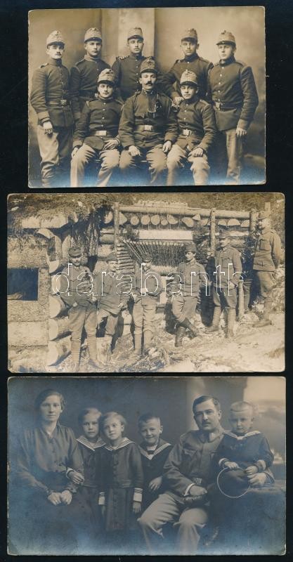 Leírás: cca 1930-1940 9 db katonákat ábrázoló fotó és fotólap