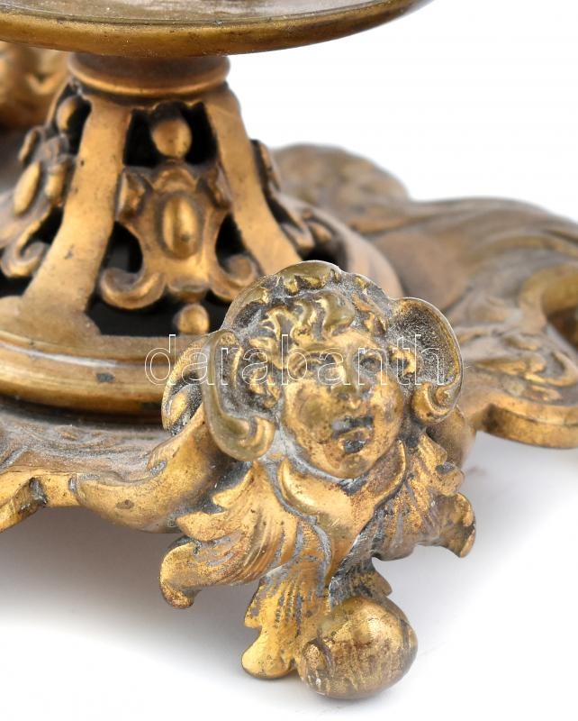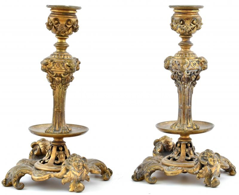 Leírás: Antik bronz gyertyatartó pár, kopott, m: 17cm