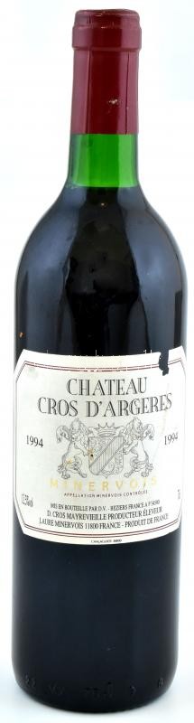 Leírás: 1994 Chateau Cros d' Argeres Minervois, Languedoc-Roussillon, bontatlan palack francia vörösbor, 12,5%, 0,75 l.