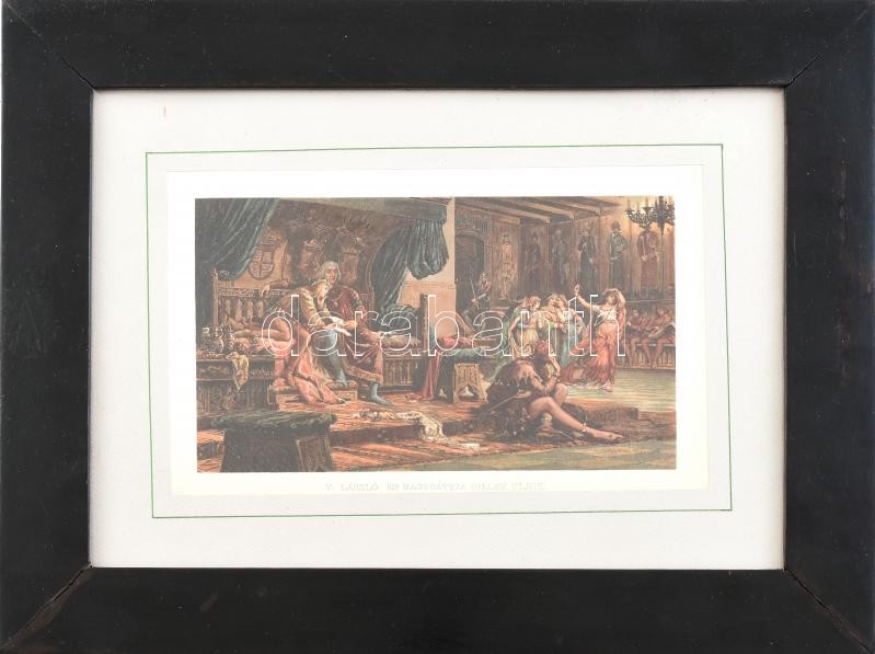 Leírás: cca. 1900 V. László és Urlik. Neogrády Antal (1861 - 1942) után. Kromolitográfia, papír. Üvegezett kopott fakeretben. 12x20cm