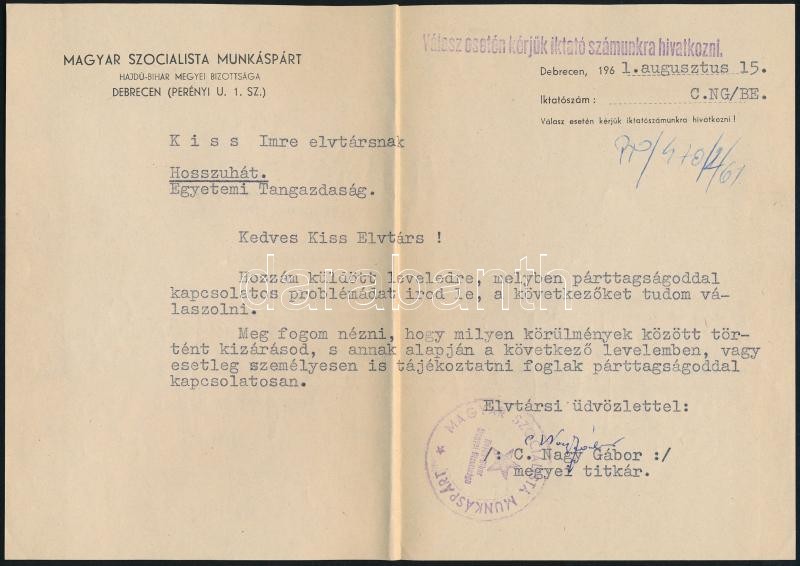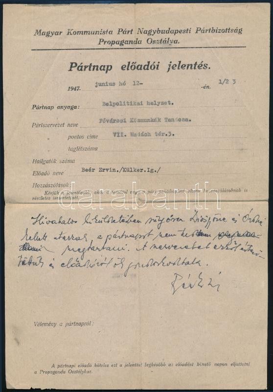 1947, 1961 MKP, MSZMP 2 db pártirat