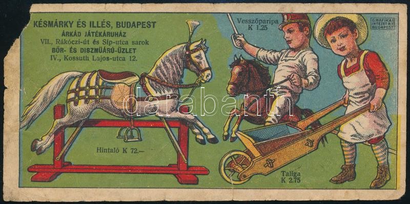 Késmárky és Illés Árkád Játékáruház számolócédula, sarokhiánnyal, kis ... https://www.darabanth.com/hu/412-Gyorsarveres/412.0/Mutargy-papirregiseg-egyeb/Reklam~500022/Kesmarky-es-Illes-Arkad-Jatekaruhaz-szamolocedula-sarokhiannyal-kis-szakadassal~II2570465