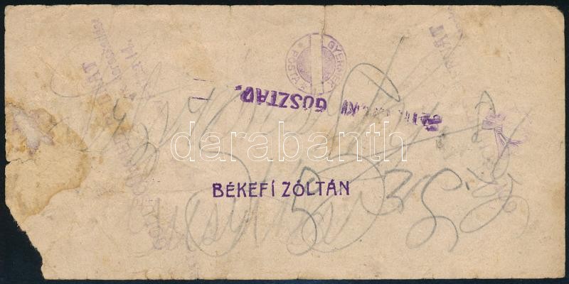 Leírás: Késmárky és Illés Árkád Játékáruház számolócédula, sarokhiánnyal, kis szakadással