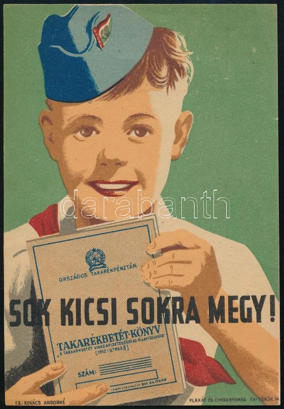 cca 1955 Sok kicsi sokra megy Takarékbetétkönyv reklám, 14,5×10 cm https://www.darabanth.com/hu/412-Gyorsarveres/412.0/Mutargy-papirregiseg-egyeb/Reklam~500022/cca-1955-Sok-kicsi-sokra-megy-Takarekbetetkonyv-reklam-14-5C39710-cm~II2563859