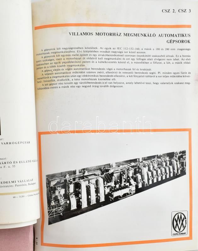 Leírás: cca 1975 A Csepel gyár termékei, benne 4 db eredeti Pannonia motor reklám nyomtatvány + egyéb gépek. Keménykötésben bekötve, lapok foltosak