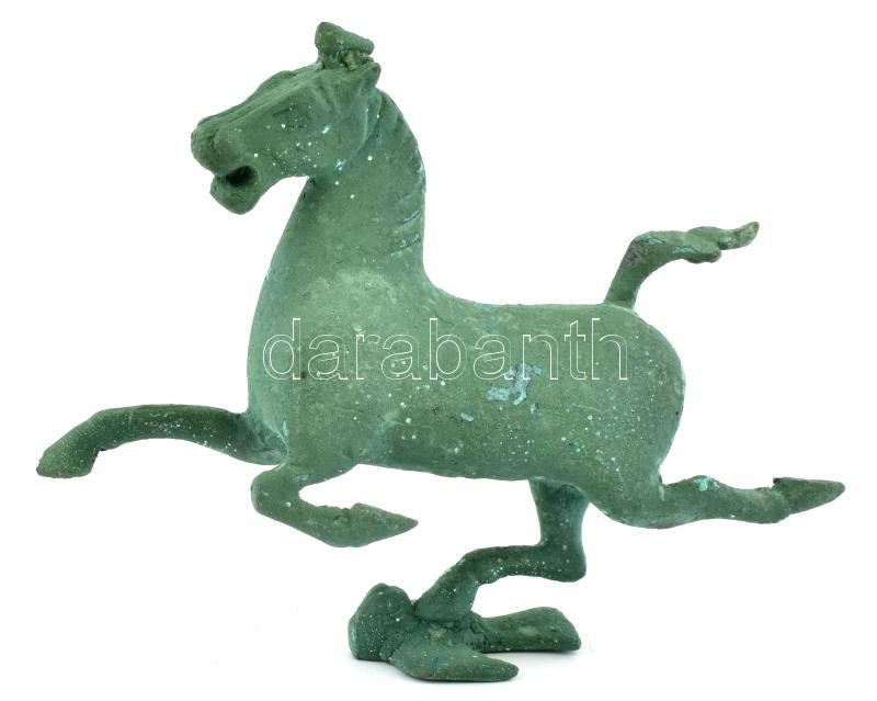 Leírás: Kínai bronz figura, fecskére lépő ló, antikolt, jelzés nélkül m:12cm