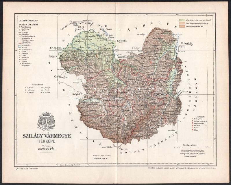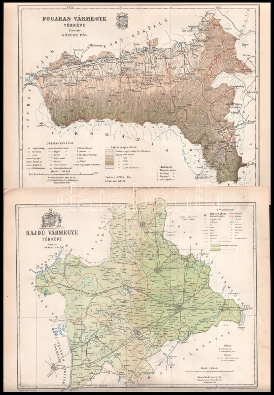Leírás: cca 1900 9 db Pallas vármegye térkép Árva, Hajdu, Győr, fogaras, Kolozs, Kis-Küküllő, Szilágy, Háromszék, Hunyad
