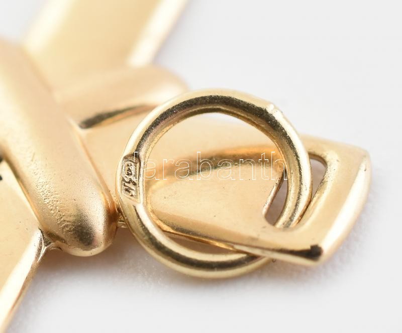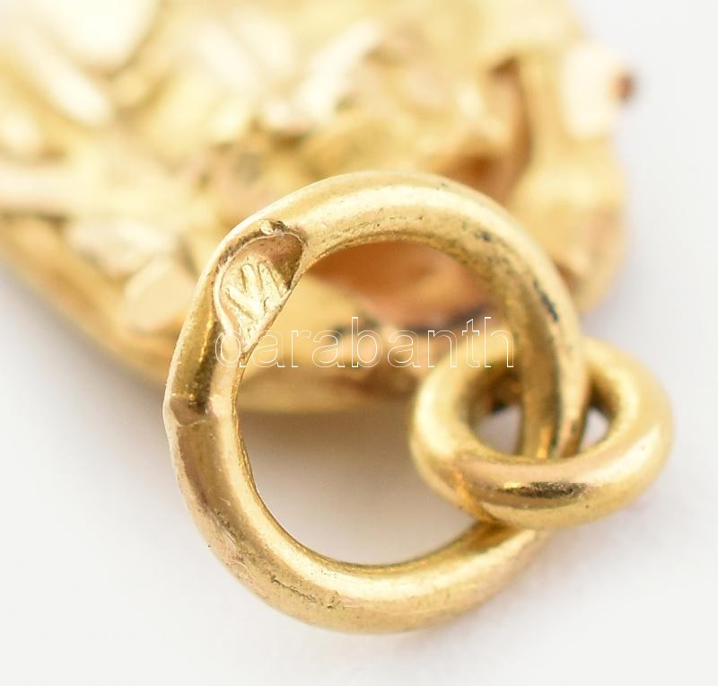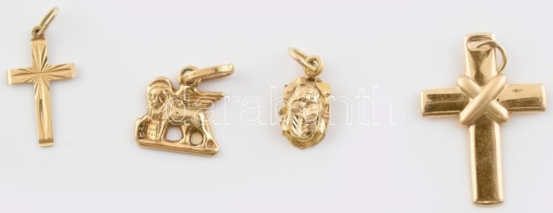 Leírás: Arany, (Au/14k) 4db mini medál, kereszt, velencei oroszlán, szkarabeusz bogár, jelzett, nettó:2,9g