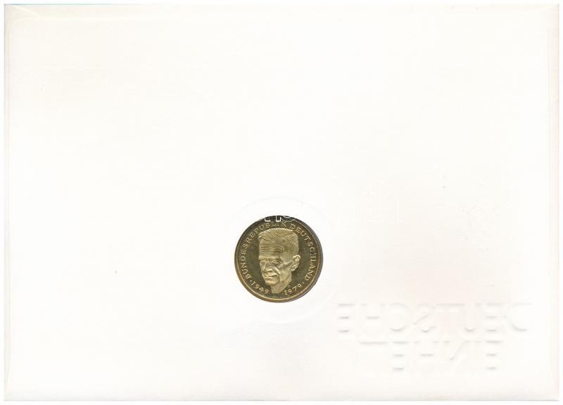 Német Szövetségi Köztársaság 1990D 2M aranyozott Cu-Ni "Német egység" érmés borítékban bélyeggel, bélyegzéssel T:1,1- FRG 1990D 2 Mark gilded Cu-Ni in "German Unity" coin envelope with stamps and cancellations C:UNC,AU