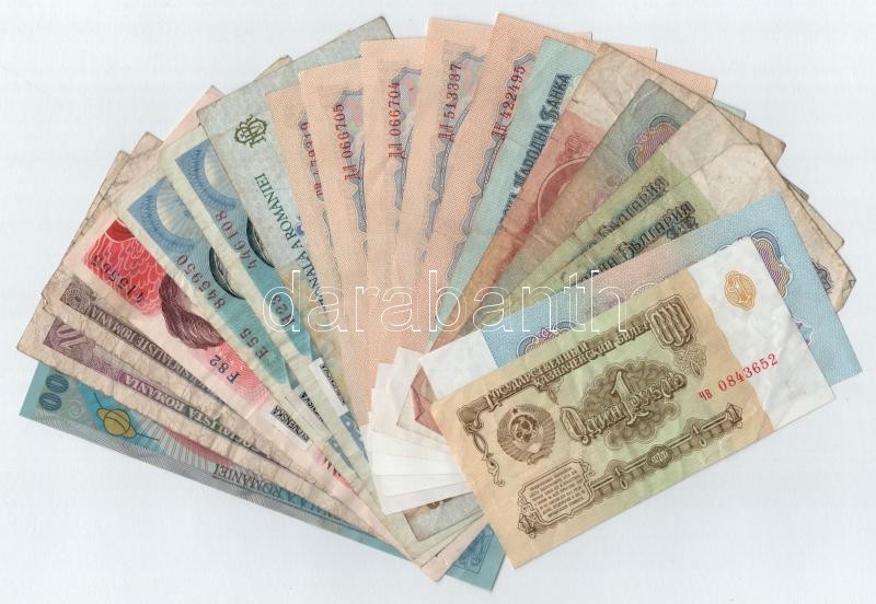 Leírás: 19db-os vegyes, külföldi bankjegytétel, közte Bulgária (közte 2db 1974-es 20L sorszámkövető), Szovjetunió, Csehszlovákia (közte 1987. 50K szlovák bélyeggel) T:III,III-