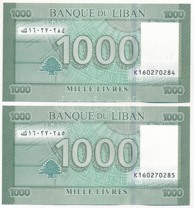 Lebanon 2016. 1000 Livre... https://www.darabanth.com/hu/412-Gyorsarveres/412.0/Numizmatika/Kulfoldi-bankjegyek~1500013/Libanon-2016-1000L-2x-sorszamkovetok-TI-Lebanon-2016-1000-Livres-2x-consecutive-serials~II2565956