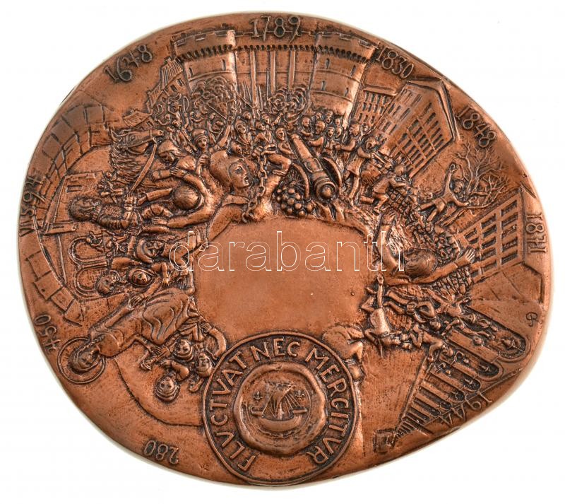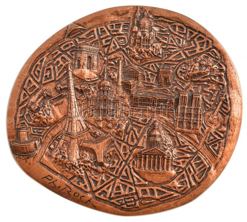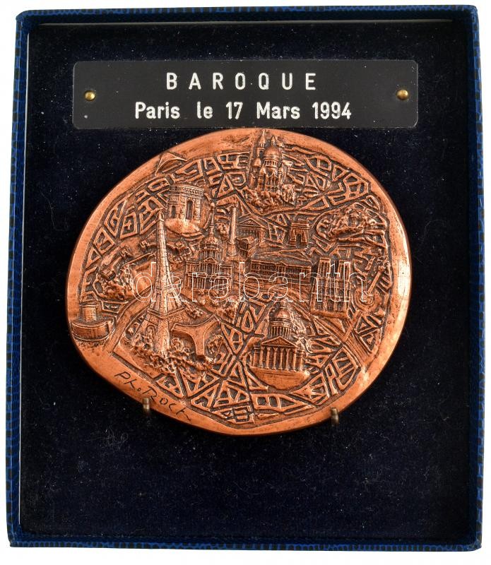 Franciaország 1994. Párizs városát ábrázoló bronz plakett, hátoldalán a város történetének fontosabb dátumaival, dísztokban, asztali kitámasztóval (86x97mm) T:1-