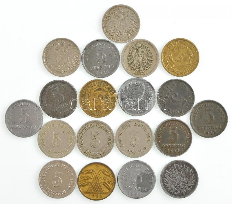 Leírás: Német Birodalom 1876-1924. 5pf (19xklf) T:2-3