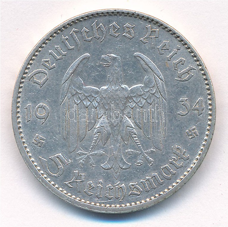 Német Harmadik Birodalom 1934A 5M Ag "Náci hatalom első évfordulója" T:2 German Third Reich 1934A 5 Marks Ag "1st Anniversary of Nazi rule" C:XF Krause KM#83