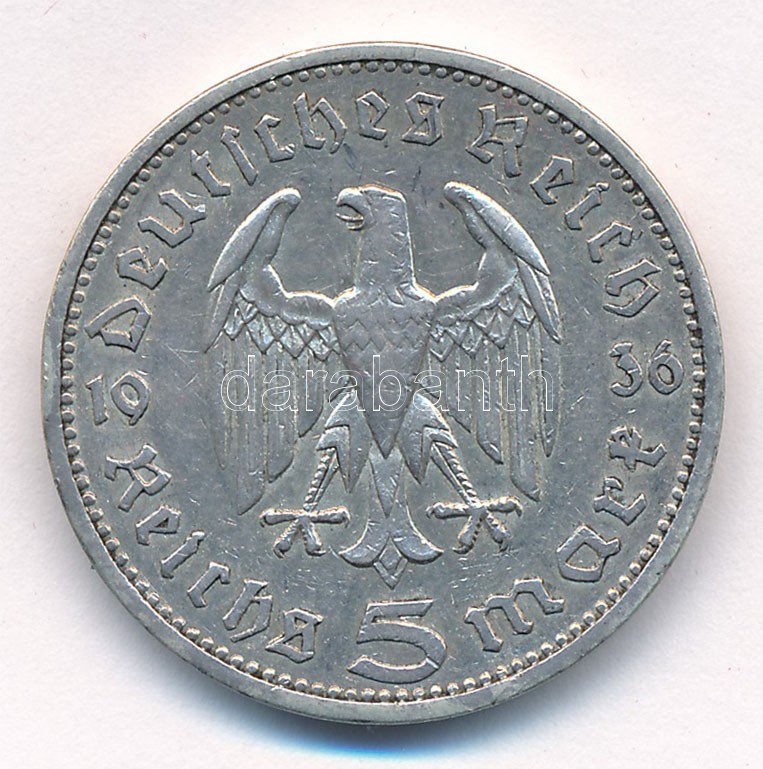 Német Harmadik Birodalom 1936A 5M Ag "Hindenburg" T:2 German... https://www.darabanth.com/hu/412-Gyorsarveres/412.0/Numizmatika/Kulfoldi-fem-es-ezustpenzek~1500014/Nemet-Harmadik-Birodalom-1936A-5M-Ag-Hindenburg-T2-German-Third-Empire-1936A-5-Reichsmark-Ag-Hi~II2568723